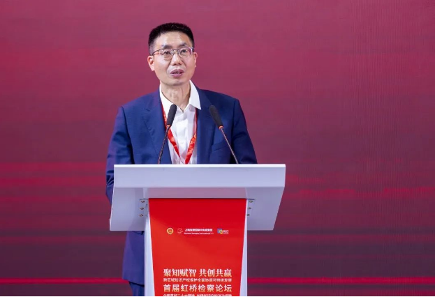 盛勇强副书记致辞,他指出战略合作备忘录的签署,为检察机关更好服务虹桥国际中央商务区提供了明确的指引,通过成立上海虹桥国际中央商务区知识产权检察服务基地,也让检察工作的触角延伸到创新链、产业链前段,有助于检察机关了解相关产业、企业的知识产权保护需求,今后将主动创新作为,科学高效履职,以平台促交流,以机制促保障,以共创促共建,为虹桥国际中央商务区打造新型增长极贡献检察智慧和力量。